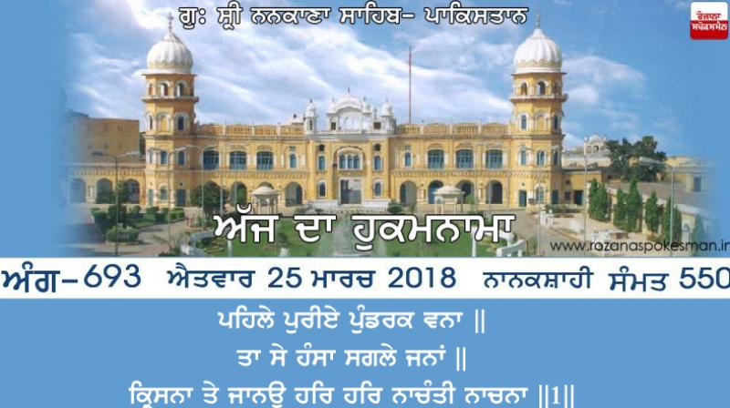 ਅੱਜ ਦਾ ਹੁਕਮਨਾਮਾ 25 ਮਾਰਚ, 2018