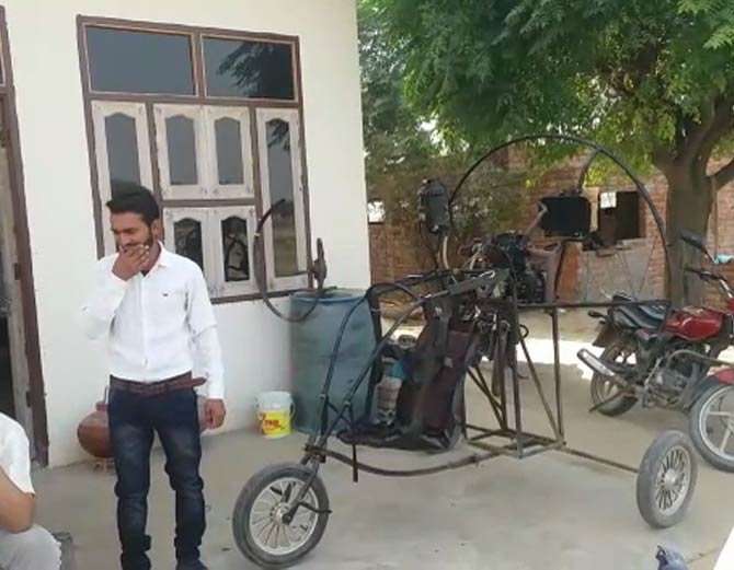 ਹਿਸਾਰ ਦੇ ਆਦਮਪੁਰ ਕਸਬੇ ਦੀ ਢਾਣੀ ਮੋਹਬਤਪੁਰ ਵਿੱਚ ਰਹਿਣ ਵਾਲੇ ਕੁਲਦੀਪ ਟਾਕ ਨੇ ਜੁਗਾੜ ਨਾਲ ਇੱਕ ਫਲਾਇੰਗ ਮਸ਼ੀਨ ਬਣਾ ਦਿੱਤੀ ਹੈ। ਬੀਟੈੱਕ ਕਰ ਚੁੱਕੇ ਕੁਲਦੀਪ ਨੇ ਇਸ ਮਸ਼ੀਨ ਵਿੱਚ ਬਾਇਕ ਦਾ ਇੰਜਨ ਫਿਟ ਕੀਤਾ ਹੈ। ਜੋ 1 ਲਿਟਰ ਪੈਟਰੋਲ ਵਿੱਚ ਕਰੀਬ 12 ਮਿੰਟ ਤੱਕ ਅਸਮਾਨ ਵਿੱਚ ਉੱਡਦੀ ਹੈ । ਇਹ ਮਸ਼ੀਨ ਪੈਰਾਗਲਾਇਡਿੰਗ ਫਲਾਇੰਗ ਮਸ਼ੀਨ ਜਾਂ ਮਿਨੀ ਹੈਲੀਕਾਪਟਰ ਦੀ ਤਰ੍ਹਾਂ ਹੈ ।