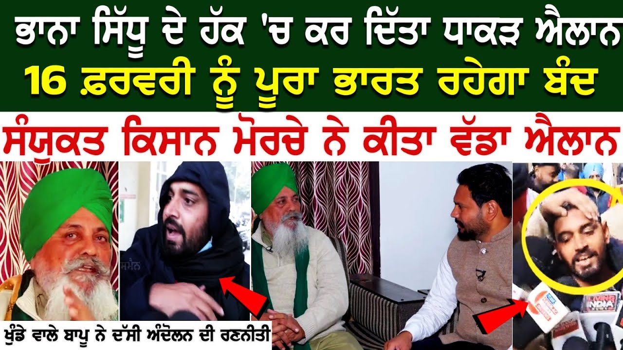 Bhana Sidhu ਦੇ ਹੱਕ 'ਚ ਕਰ ਦਿੱਤਾ ਧਾਕੜ ਐਲਾਨ 16 ਫ਼ਰਵਰੀ ਨੂੰ ਪੂਰਾ ਭਾਰਤ ਰਹੇਗਾ ਬੰਦ ਸੰਯੁਕਤ ਕਿਸਾਨ ਮੋਰਚੇ ਨੇ..