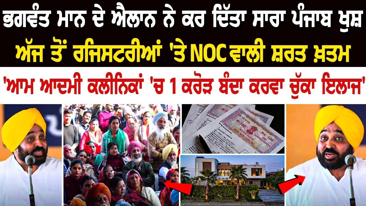 Bhagwant Mann ਦੇ ਐਲਾਨ ਨੇ ਕਰ ਦਿੱਤਾ ਸਾਰਾ Punjab ਖੁਸ਼, ਅੱਜ ਤੋਂ ਰਜਿਸਟਰੀਆਂ 'ਤੇ NOC ਵਾਲੀ ਸ਼ਰਤ ਖ਼ਤਮ