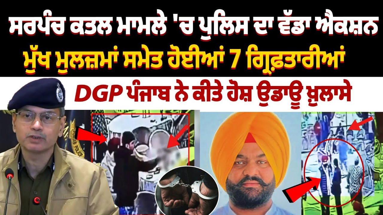 ਸਰਪੰਚ ਕਤਲ ਮਾਮਲੇ 'ਚ ਪੁਲਿਸ ਦਾ ਵੱਡਾ ਐਕਸ਼ਨ, ਮੁੱਖ ਮੁਲਜ਼ਮਾਂ ਸਮੇਤ ਹੋਈਆਂ 7 ਗ੍ਰਿਫ਼ਤਾਰੀਆਂ,DGP ਪੰਜਾਬ ਨੇ ਕੀਤੇ ਹੋਸ਼ ਉਡਾਊ ਖ਼ੁਲਾਸੇ